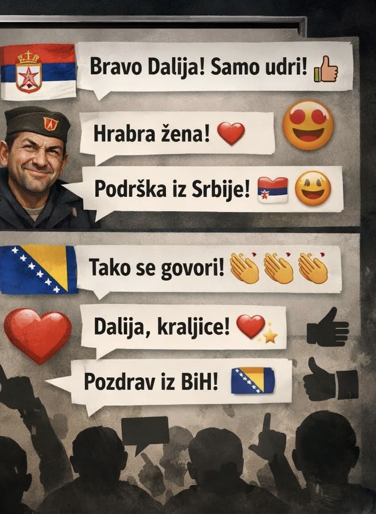 Na društvenim mrežama konfliktne objave generiraju snažne reakcije, ali iz pregleda komentara jasno je kako veći dio izražene podrške dolazi izvan Hrvatske, što domaće političke teme dodatno pretvara u regionalne ideološke polemike. Takav komunikacijski obrazac donosi vidljivost i mobilizaciju publike, ali samo u svrhu osobne promocije i promocije yugo narativa.”
