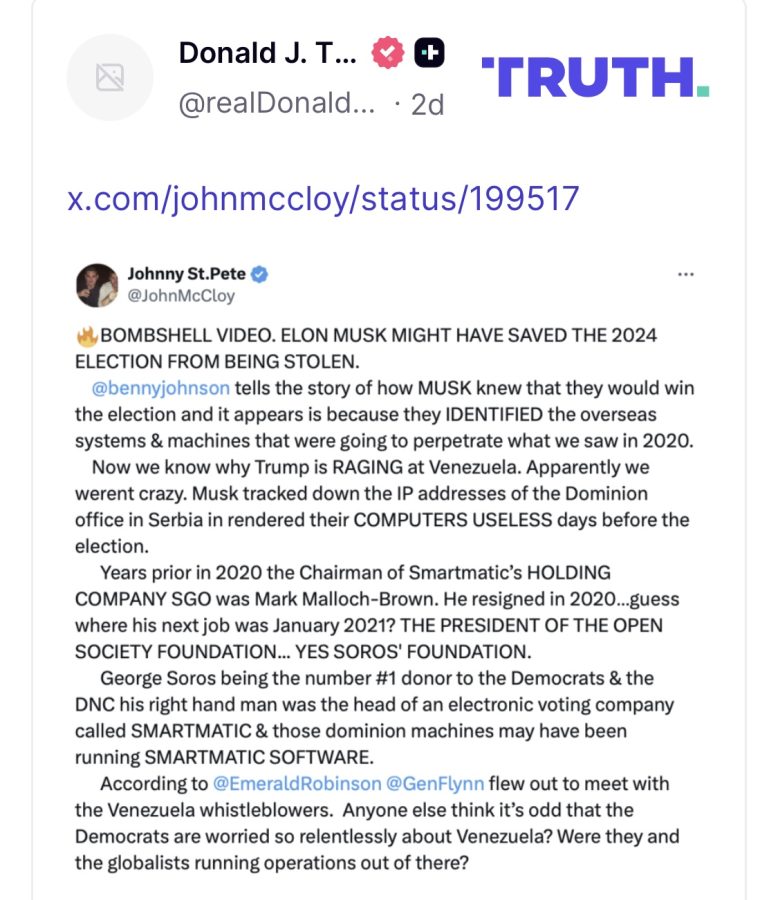 Američki predsjednik Donald Trump na svojoj platformi Truth Social podijelio je objavu s X-a koja tvrdi da je milijarder Elon Musk spriječio navodno manipuliranje rezultatima američkih predsjedničkih izbora 2024. Onemogućavanje računala tvrtke Dominion Voting Systems u, kako se navodi, Srbiji, pripisuje se Muskovim postupcima.