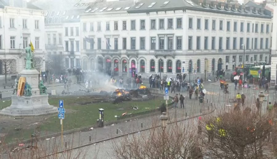 Poljoprivrednici su jučer, 18. prosinca, zapalili automobilske gume ispred zgrade Europskog parlamenta u Briselu, protestirajući protiv politika Europske unije (EU).